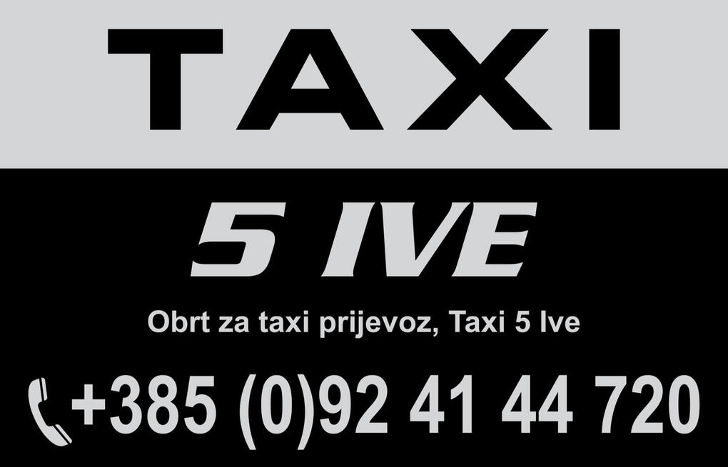 Taxi 5IVE obrt za taksi prijevoz vrši usluge taksi prijevoza na području Zadarske županije.